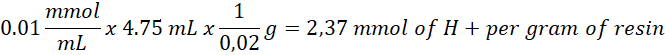 Meaning that a fully sulfonated resin has 5.4 mmol of H+ in 1g of resin.