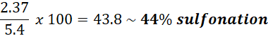 Given the theoretical maximum of 5.4 mmol/g, the percentage of sulfonation is: