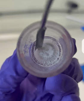 Having optimised a reproducible process for preparing Polystyrene Sulfonic Acid (PSSA) from waste Polystyrene (PS), we were keen to test its catalytic activity. The sample shown in the video has a sulfonation degree of 44%, determined by titration with NaOH using phenolphthalein as an indicator. This corresponds to 2.37 mmol of H⁺ per gram of PSSA.